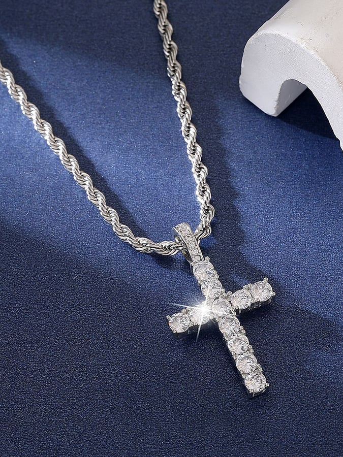 Fashionable And Personalized Classic Zircon Cross Pendant Necklace For Men And Women
