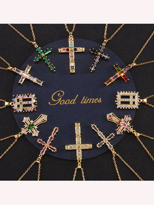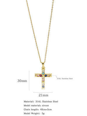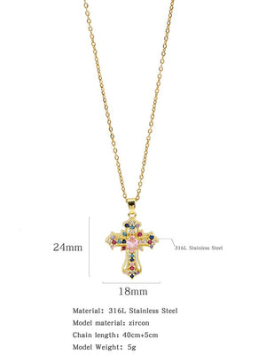 Fashionable Colorful Zircon Cross Necklace For Men And Women