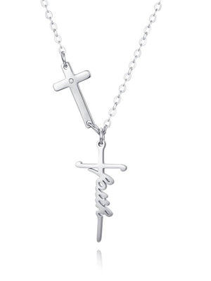 Fashionable Faith Cross Letter Design Necklace For Men And Women