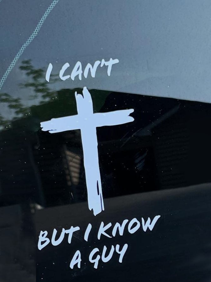 I Can't, But I Know A Guy - Christian Jesus Cross Car Vinyl Decal Bumper Sticker for Car, Wall, Window, Vehicle, Weather Resistant(10 Pieces Per Pack)