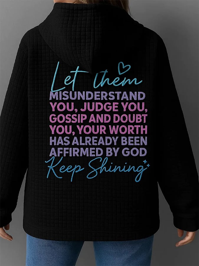 Ladies, let them misunderstand you, judge you, gossip about you, doubt you. Your worth has been affirmed by God. Keep shining! Mental Health Print Hoodie