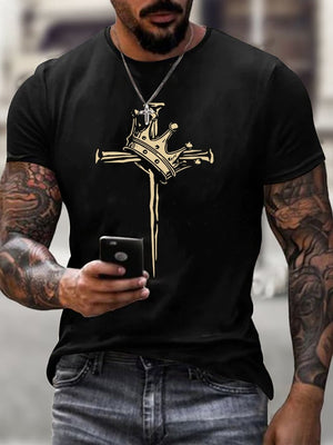 Men'S Casual Faith Cross Crown Short-Sleeved T-Shirt