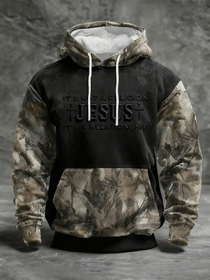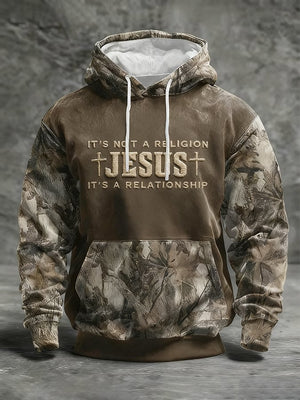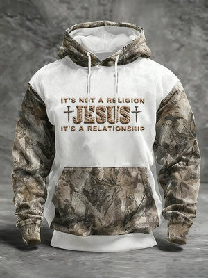 Men's Casual Retro Print Long Sleeve Hooded Sweatshirt