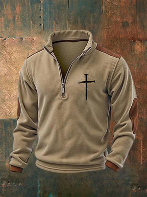 🔥Buy 3 Get 15% Off🔥Men's Classic Faith Cross Print Zipper Stand Collar Sweatshirt