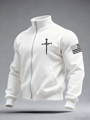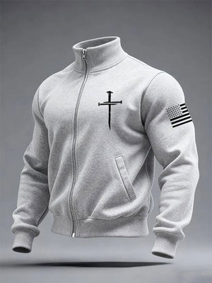 Men's Faith Cross Print Stand Collar Pocket Sweatshirt
