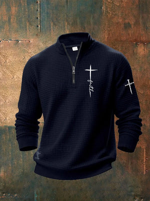 Men's Faith Print Zip Collar Waffle Sweatshirt