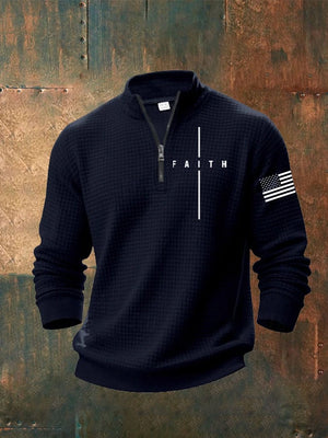 Men's Faith Print Zip Collar Waffle Sweatshirt