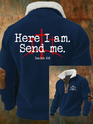 Men's Faith Print Zipper Fur Collar Long Sleeve Sweatshirt