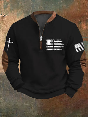 Men's Flag Cross Printed Zip Collar Sweatshirt