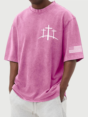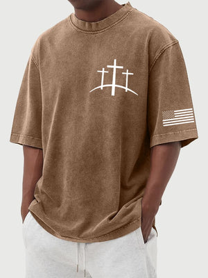 🔥Buy 3 Get 15% Off🔥Men's Flag Faith Cross Printed Cotton Washed T-Shirt