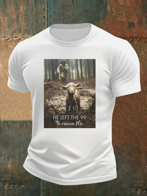 š„Buy 3 Get 15% Offš„Men's He Left the 99 to Rescue Me, Jesus and Lost Sheep, Christian T-shirt
