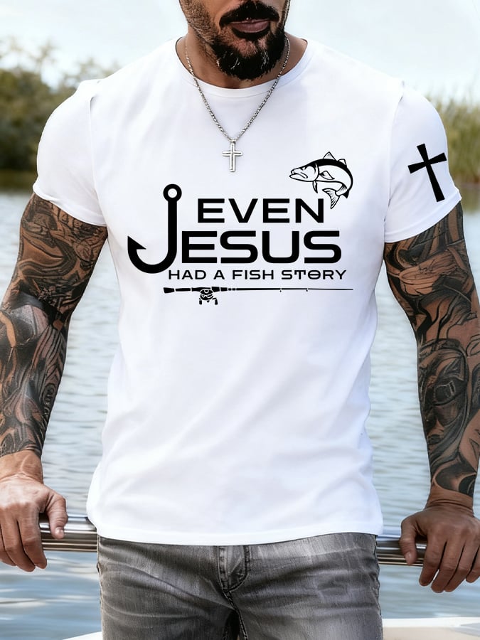 Men's Jesus Also Told The Story Of The Fish Printed T-Shirt
