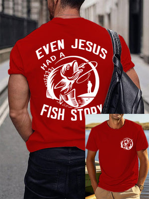 Men's Jesus Also Told The Story Of The Fish Printed T-Shirt