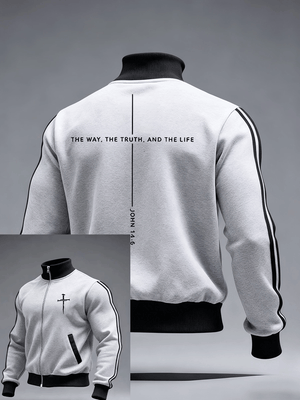 Men's Jesus The Way The Truth The Life John 14:6 Christian Cross Print Zipper Stand Collar Sweater
