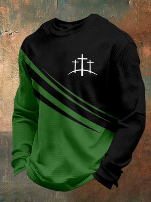 Men's Retro Faith Design Printed Waffle Fabric Long Sleeve T-Shirt