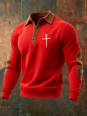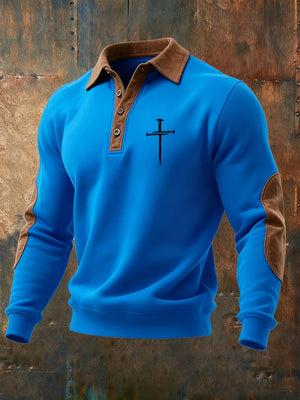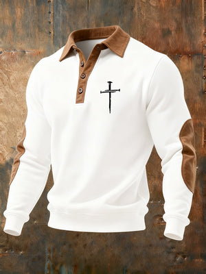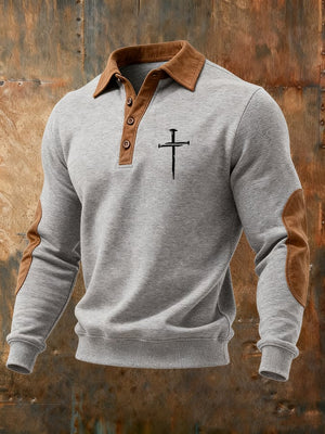 Men's Vintage Faith Cross Print Button Lapel Sweatshirt