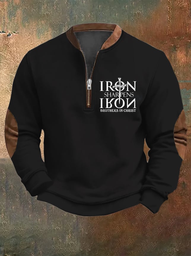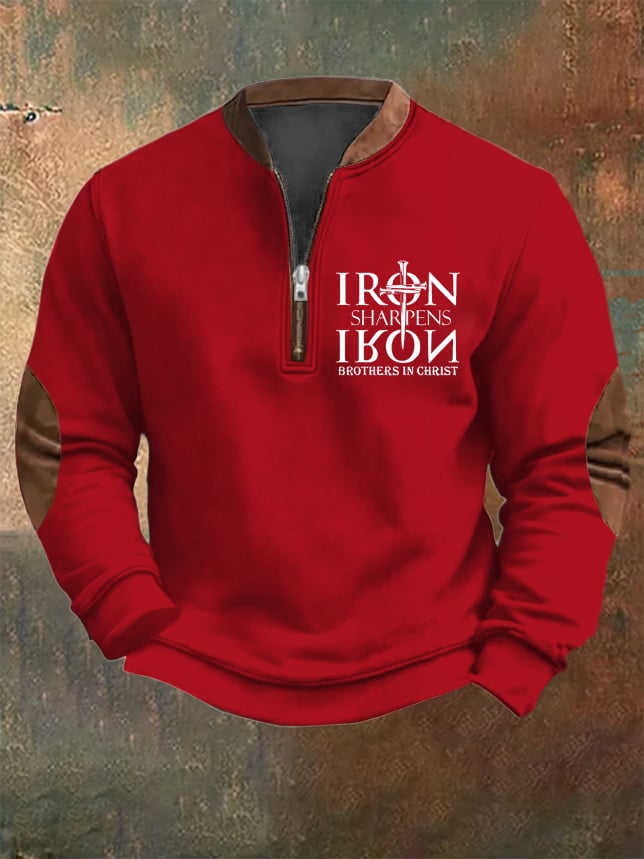 Men's Vintage Faith "Iron Sharpen Iron Brothers In Christ" Printed Zip Collar Sweatshirt