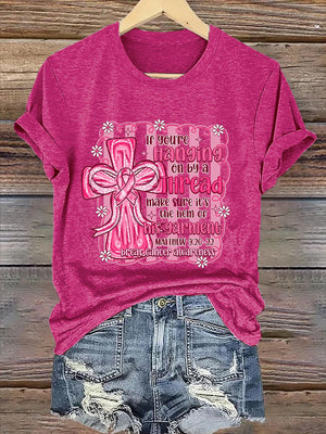 Retro Breast Cancer Awareness Faith Cross Pink Ribbon If You’Re Hanging On By A Thread Make Sure It’s The Hem Of His Garment Matthew 9:20-22 Print T-Shirt