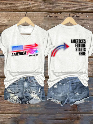 V-Neck Retro America Fest 2025 America's Future Starts Here Print T-Shirt