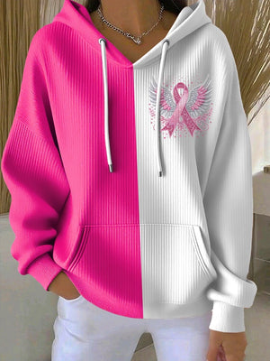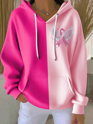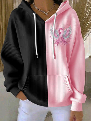 Women's Casual Contrast Pink Ribbon Wings Hoodie