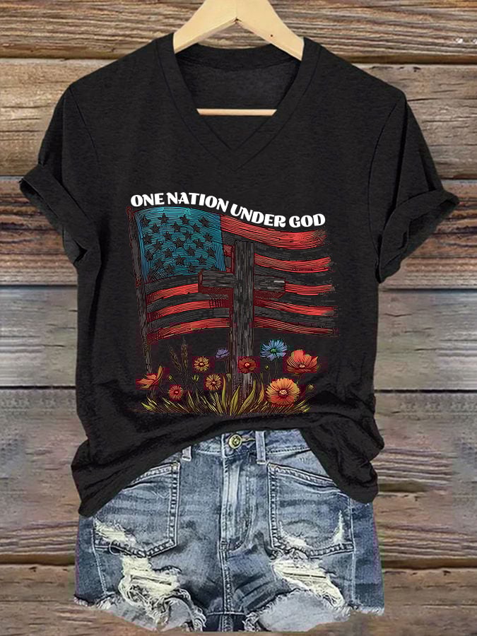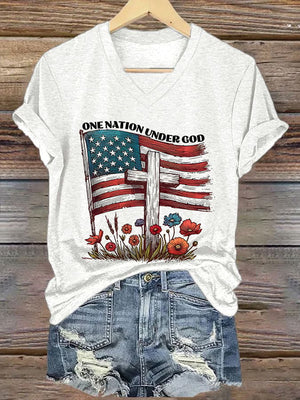 Women's Casual Faith Graphic Print V-Neck Short Sleeve T-Shirt