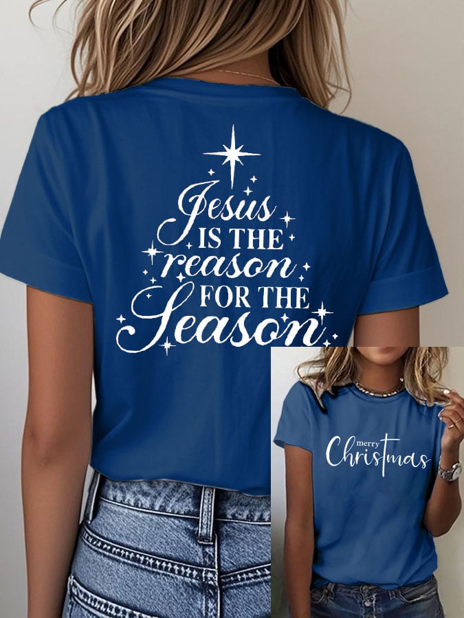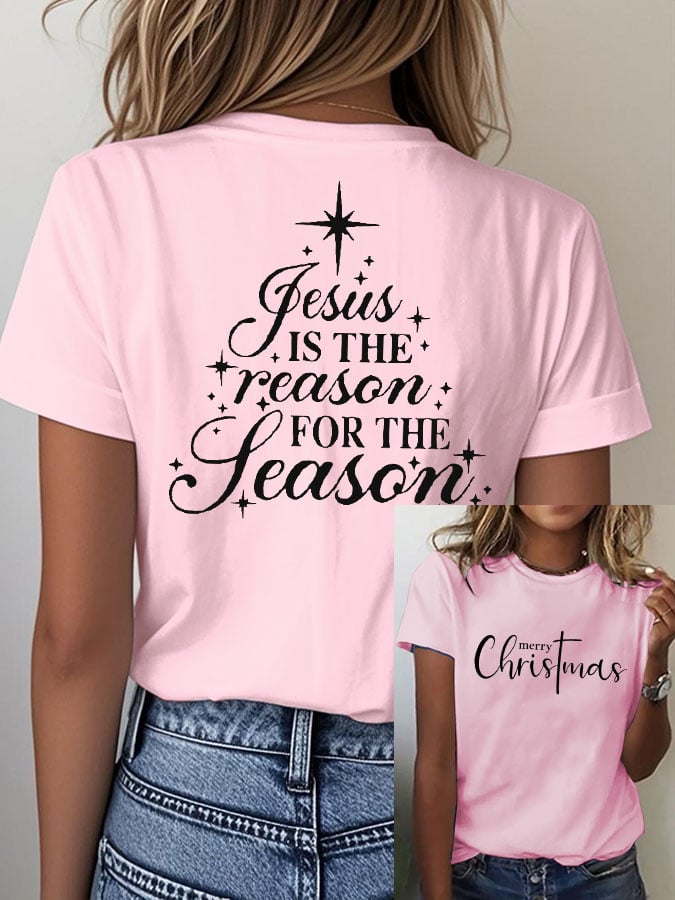 Women's Christmas Christ Jesus is the Reason for the Season Print Casual T-shirt
