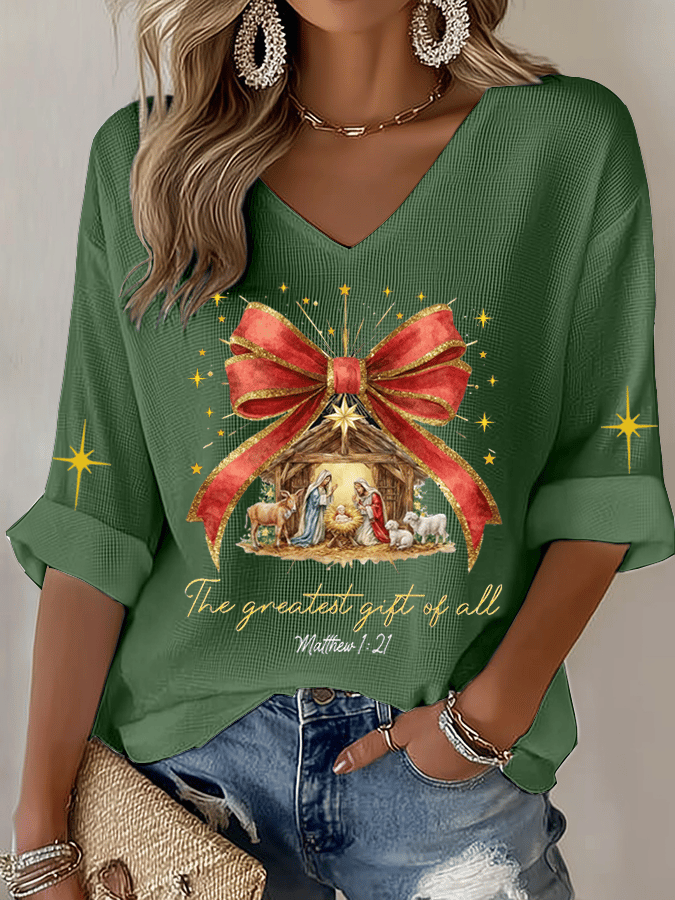 Women's Christmas Faith Print Waffle Long Sleeve T-Shirt