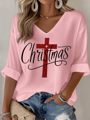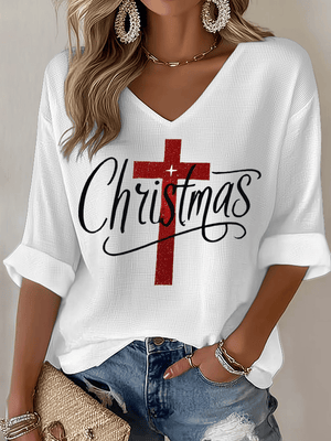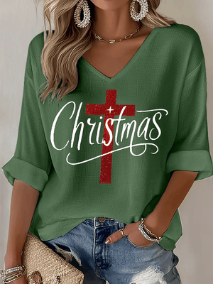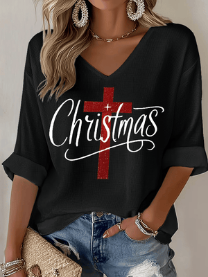 Women's Christmas Faith Print Waffle Long Sleeve T-Shirt