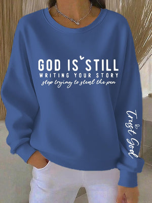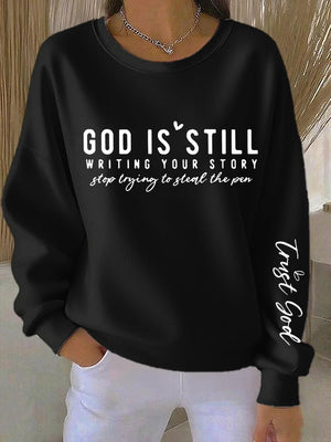 Women's Faith God Is Still Writing Your Story Stop Trying To Steal The Pen Trust God Print Sweatshirt