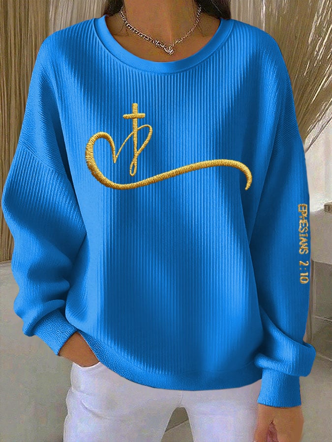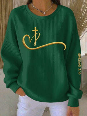 Women's Faith Print Knitted Crew Neck Long Sleeve Top