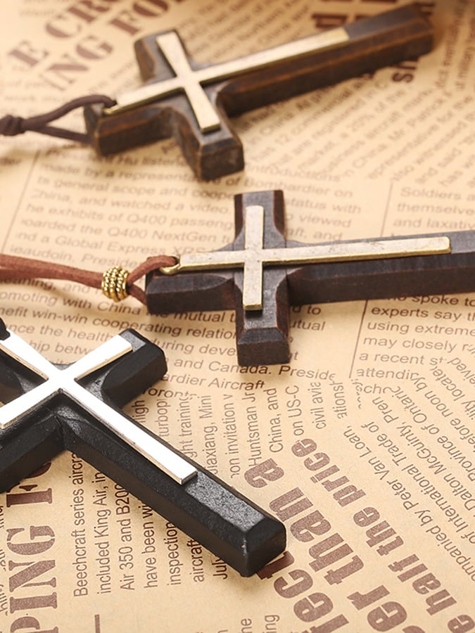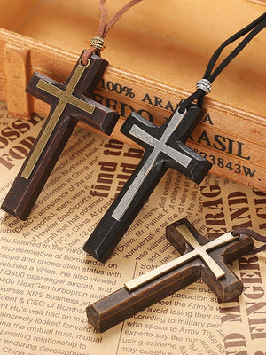 Women's Faith Vintage Handmade Double Layered Alloy Wooden Cross Necklace