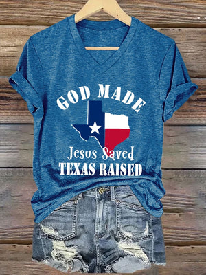 Women's God Made Juses Saved Texas Raised Printed T-Shirts