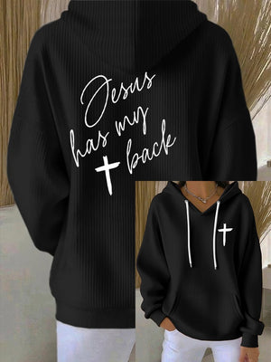 Women's Jesus Has My Back Print Casual Hoodie Sweatshirt