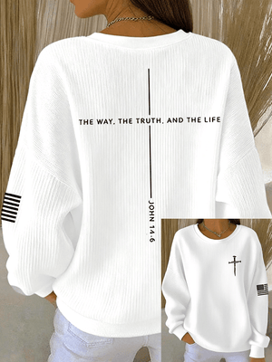 Women's Jesus The Way The Truth The Life John 14:6 Christian Cross Ribbed Round-Neck Sweatshirt