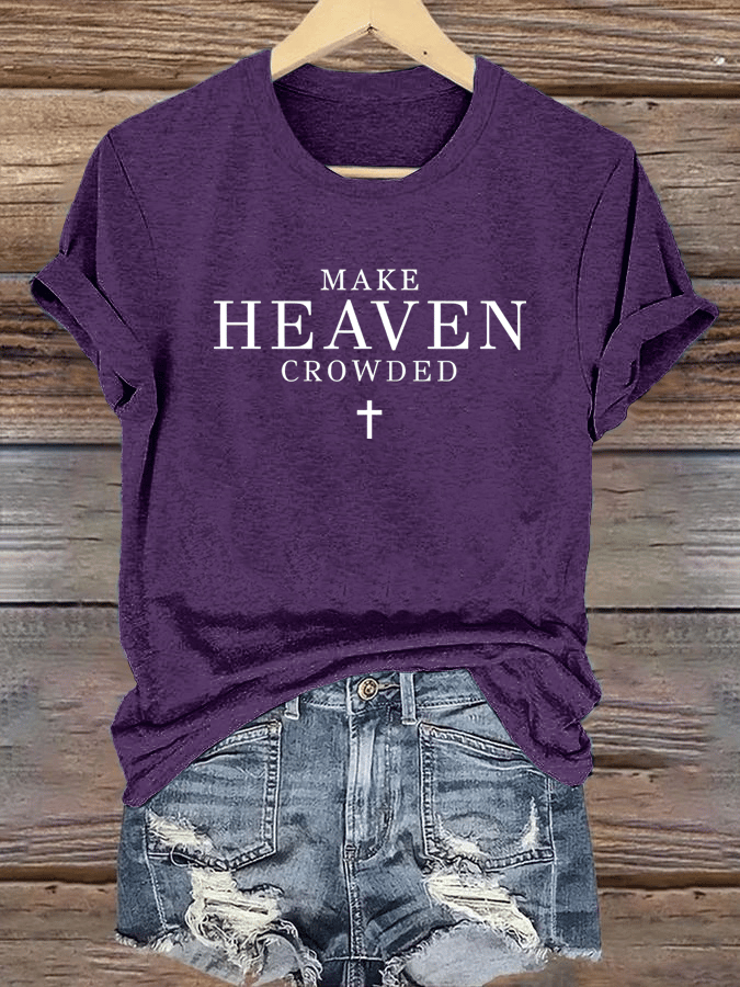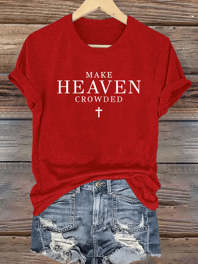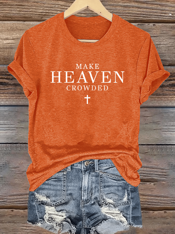 Women's Let Heaven Gather Round Neck Printed T-Shirt