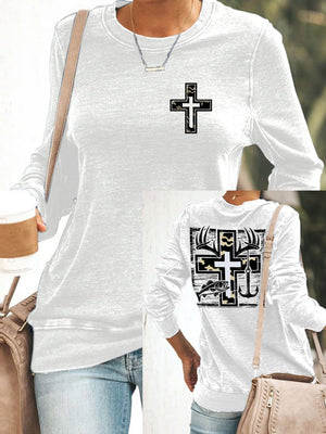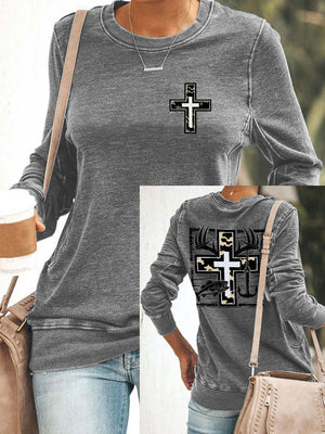 Women's Retro Faith Fishing Hunting Printed Casual Sweatshirt