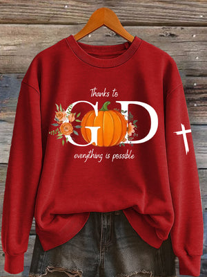 Women's Thanks To God Everything Is Possible Printed Sweatshirt