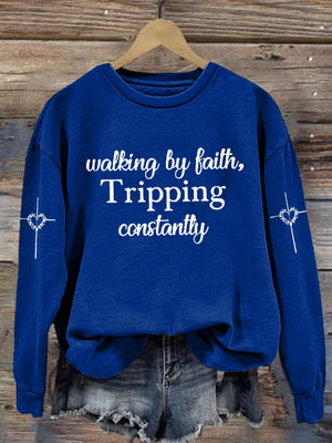 Women's Walking By Faith Tripping Constantly Print Sweatshirt