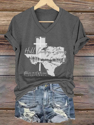 Women's Western Texas Print V-Neck Short Sleeve T-Shirt